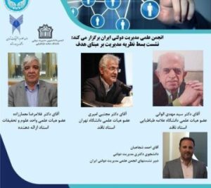 انجمن علمی مدیریت دولتی ایران برگزار می کند: نشست بسط نظریه مدیریت بر مبنای هدف عضو پنل: آقای دکتر