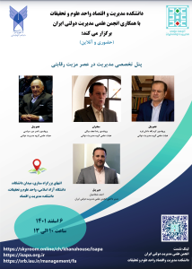 دانشکده مدیریت و اقتصاد واحد علوم و تحقیقات با همکاری انجمن علمی مدیریت دولتی ایران برگزار می کند: پنل